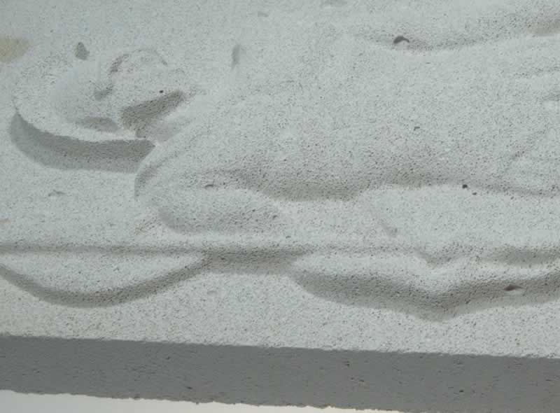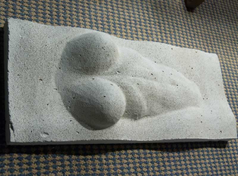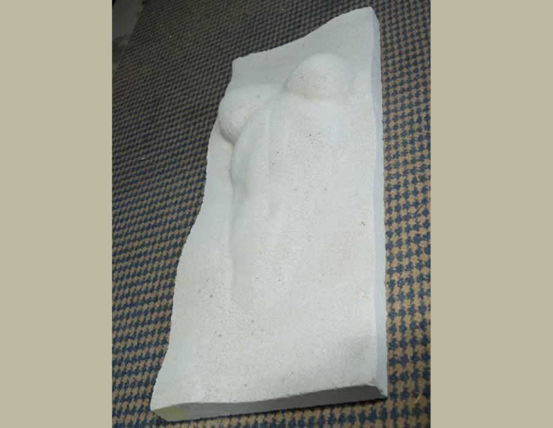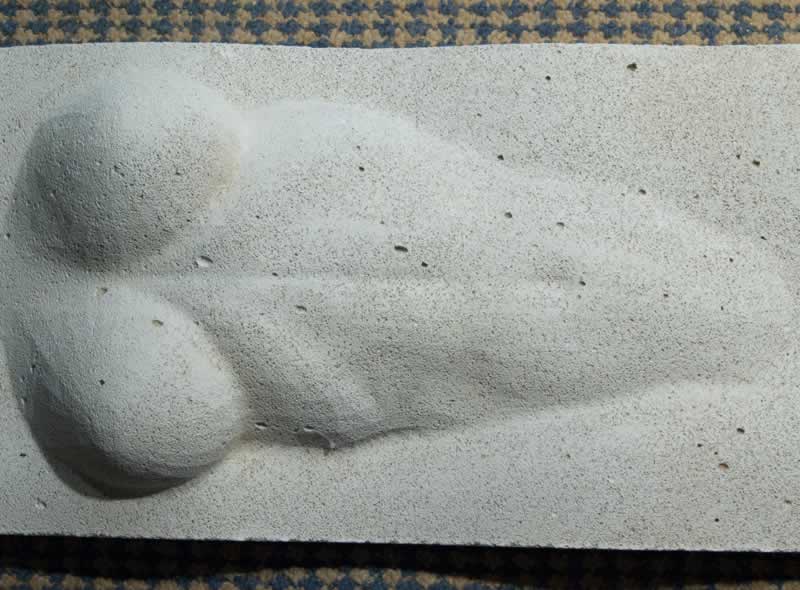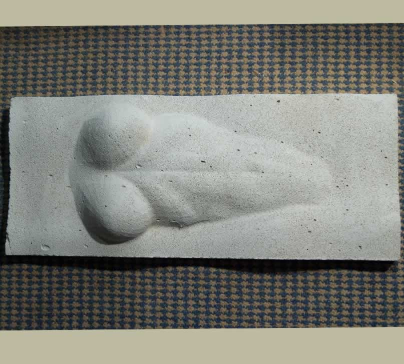 Frauentorso im Wasser treibend in einem Ytongziegel eingefräst.