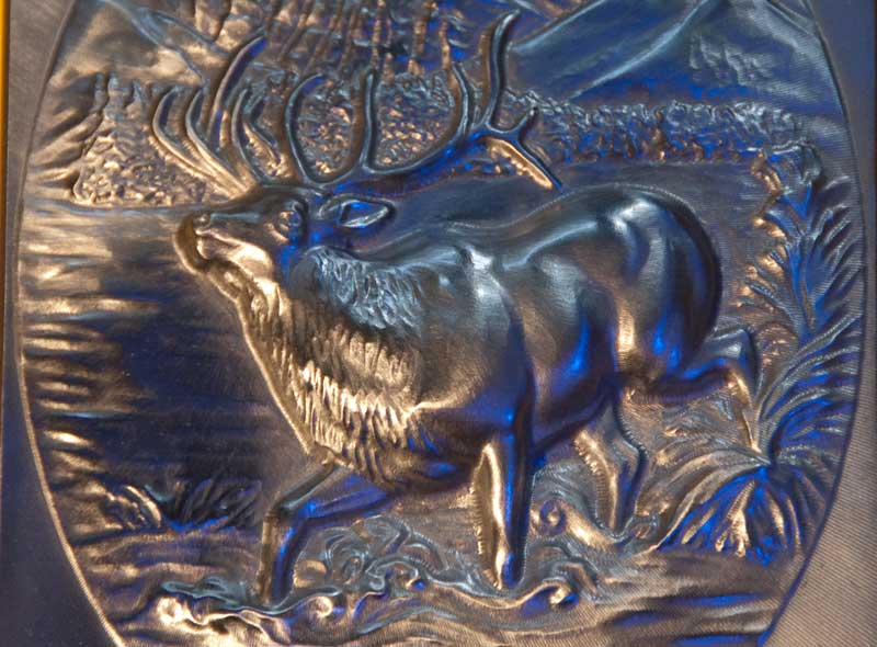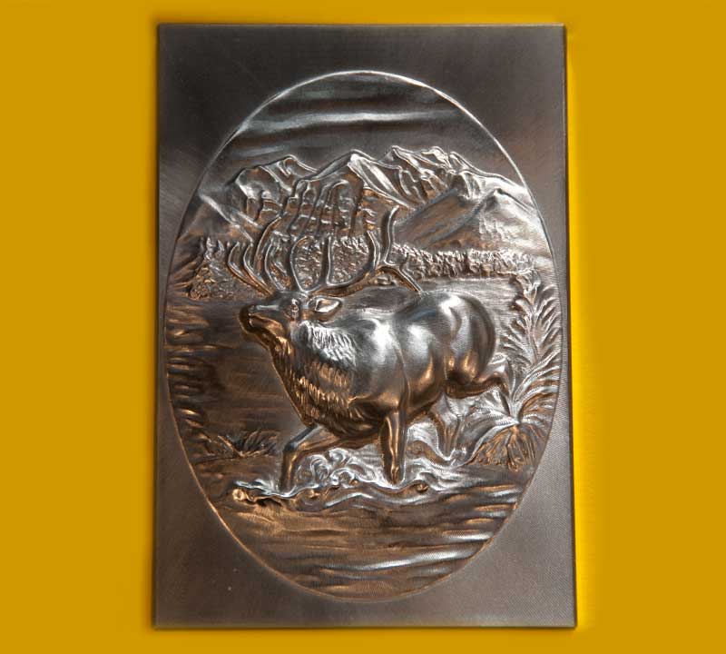 Hirschmotiv in Alu gefräst. Oberfläche unbehandelt.