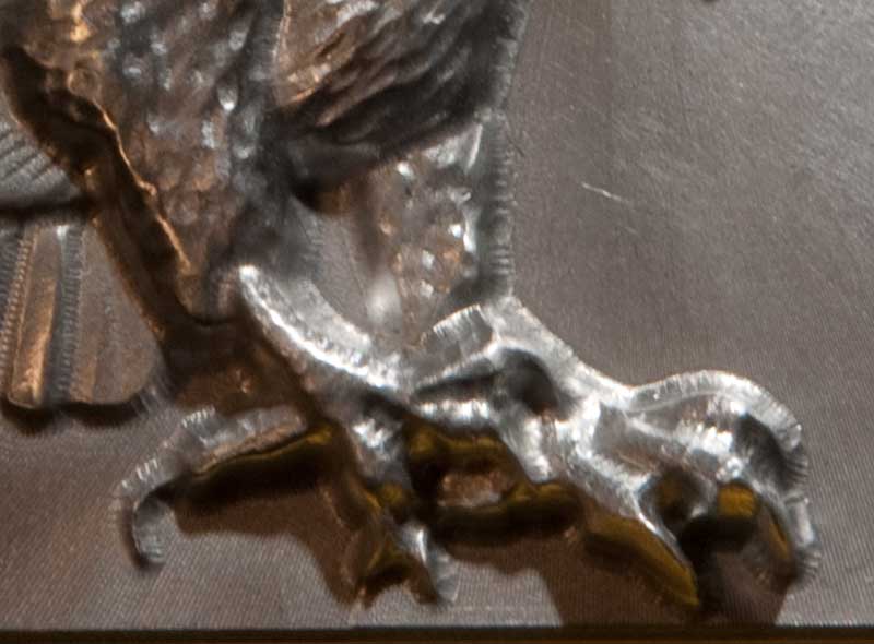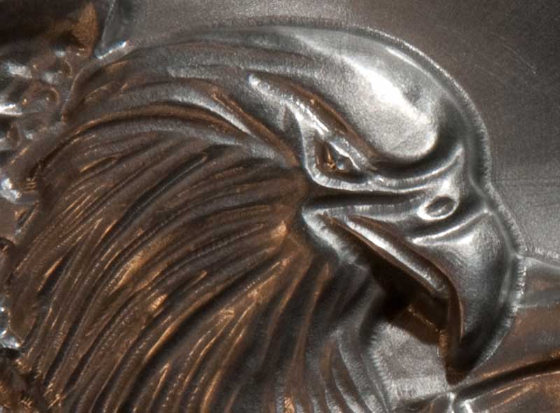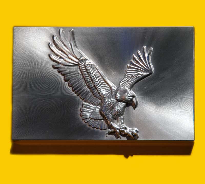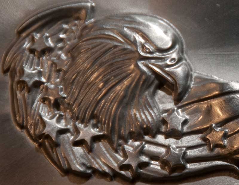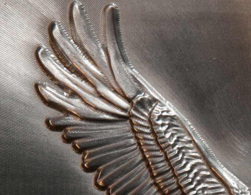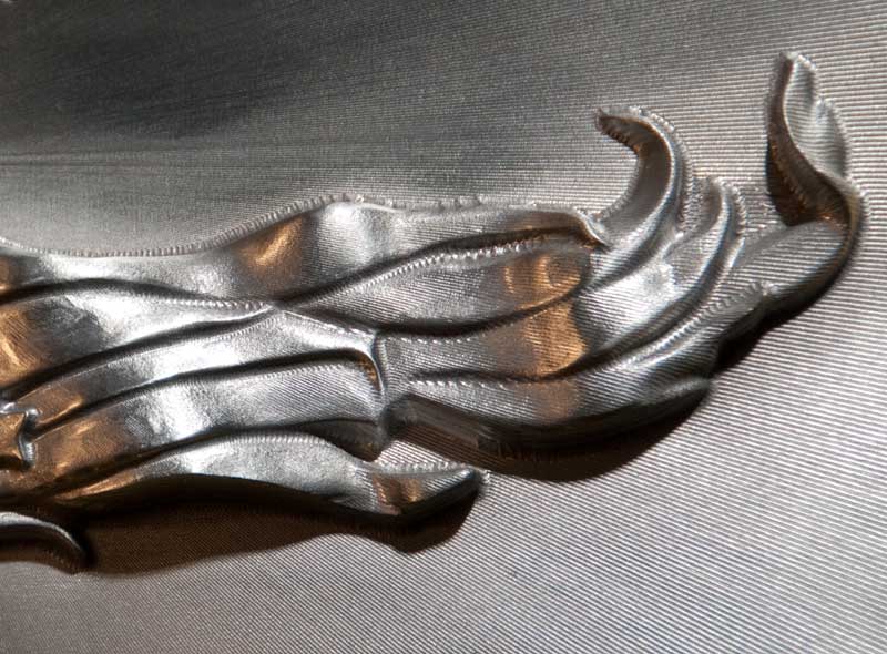 Radial gefrästes Tiermotiv. Vom Auge als Zentrum ausgehend, erziehlt es bei entsprechender Beleuchtung schöne Effekte.